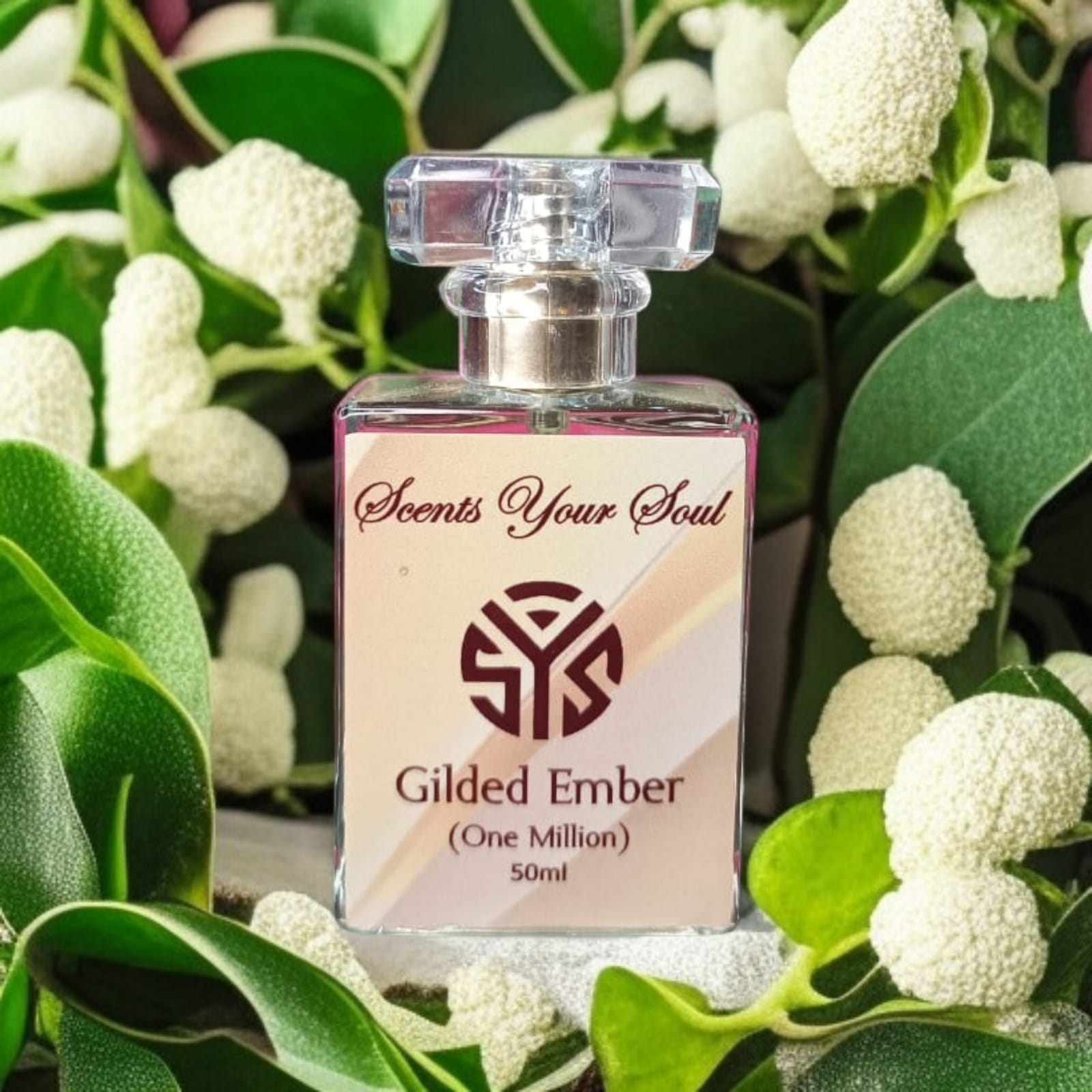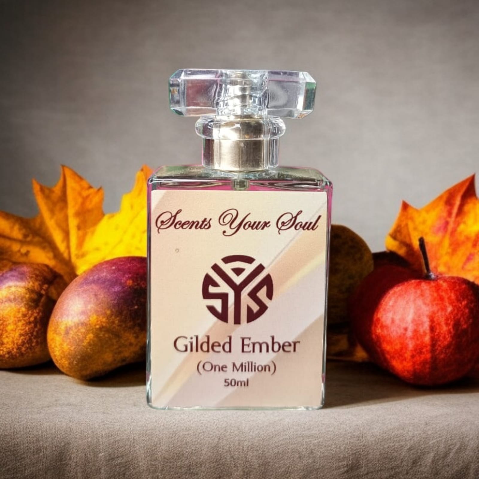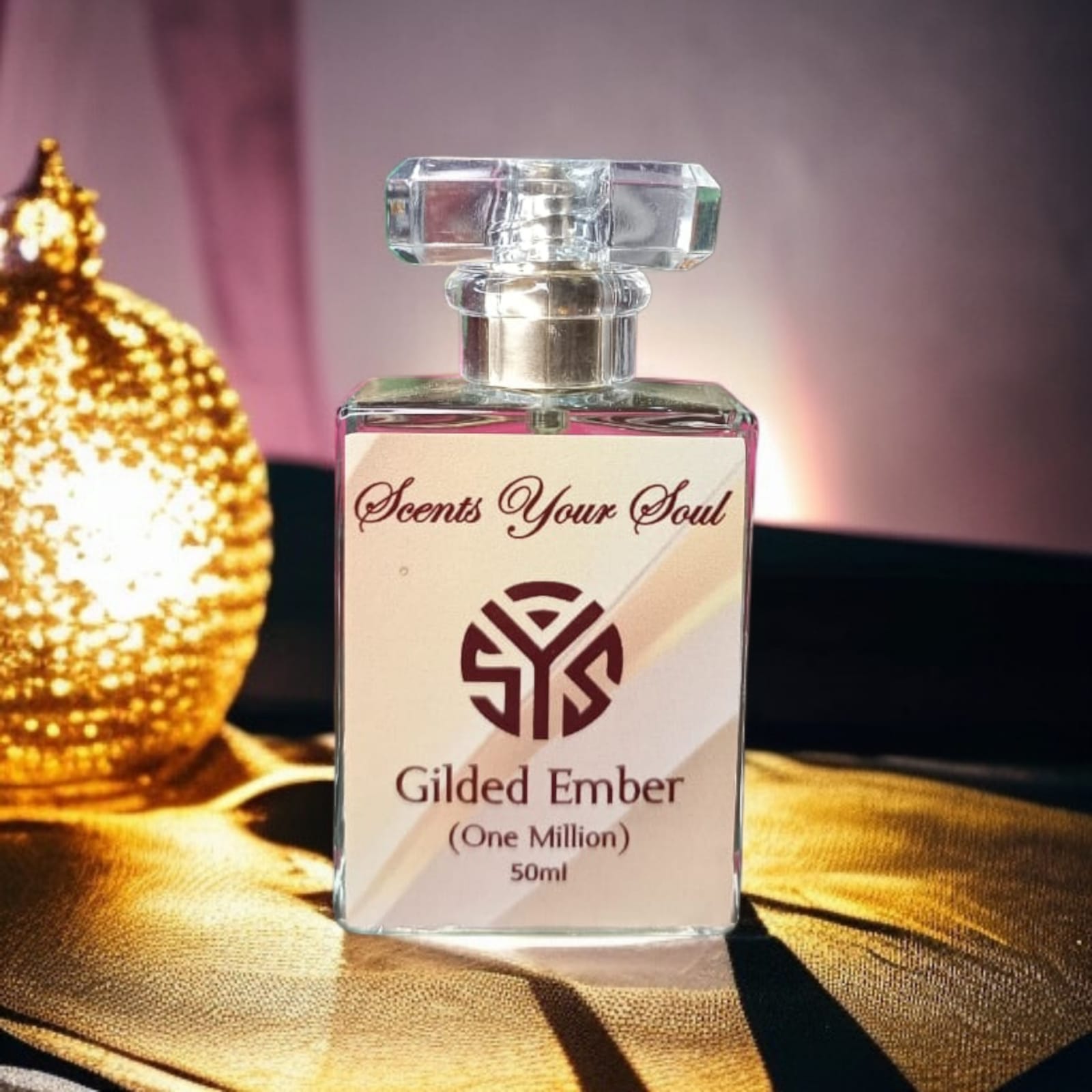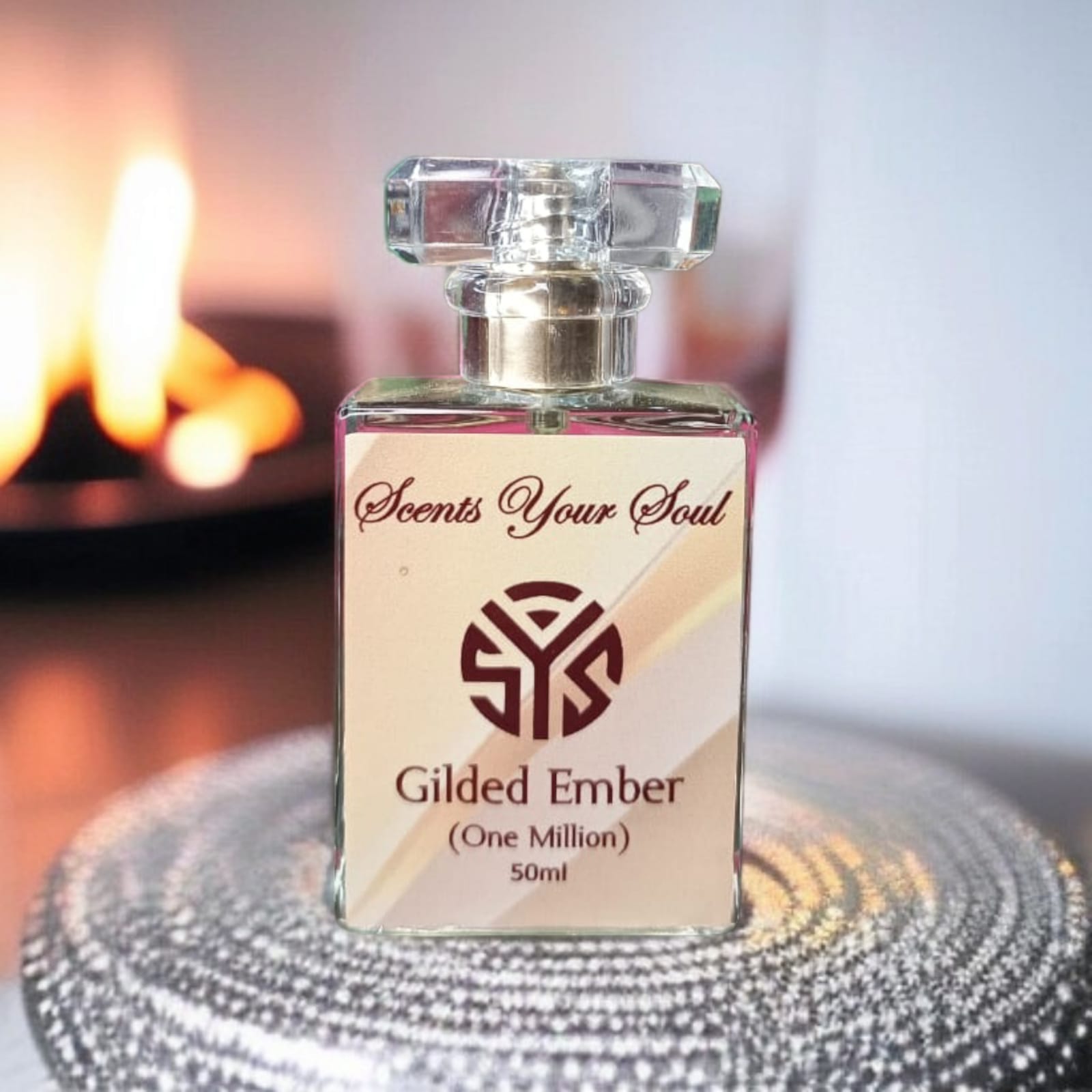 Gilded Ember is a statement of success, seduction, and confidence—boldly inspired by the iconic 1 Million by Paco Rabanne. This captivating fragrance opens with a fresh, spicy blend of blood mandarin and peppermint, immediately drawing attention with its vibrant energy. The heart reveals warm cinnamon, rose, and spicy notes that pulse with charisma and allure. Finally, it settles into a rich base of amber, leather, and patchouli, leaving a luxurious trail of masculine intensity.