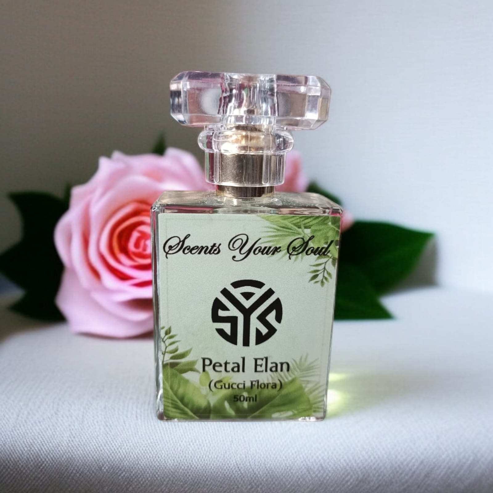 Petal Elan is a graceful blend of floral sophistication and youthful charm, inspired by the iconic Gucci Flora. This radiant fragrance opens with a fresh bouquet of citrus and peony, blooming into a heart of delicate rose and osmanthus, and settling into a warm base of sandalwood and patchouli. Elegant yet playful, it’s the perfect scent for the modern romantic.